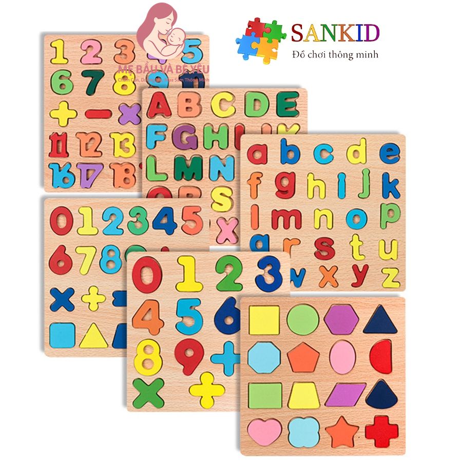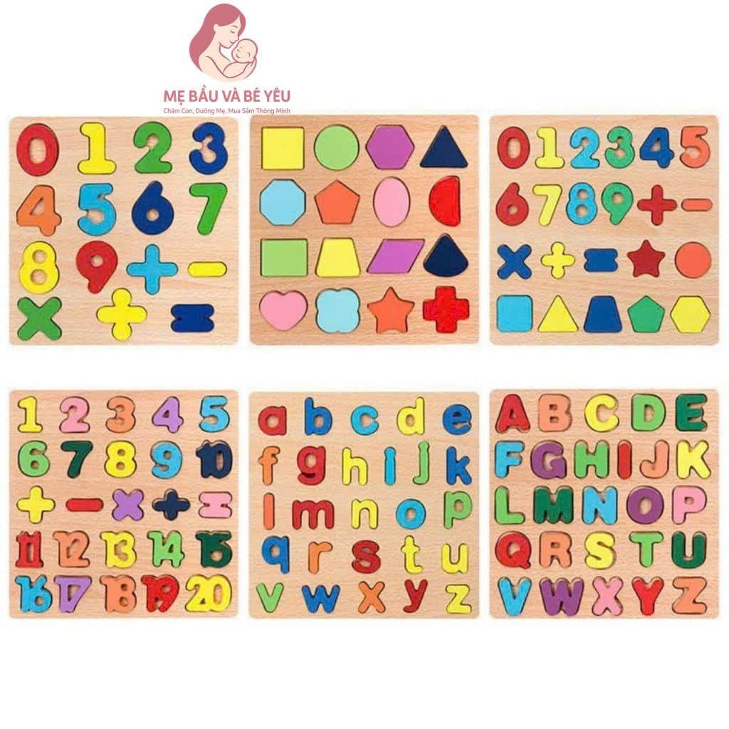 Bảng chữ cái gỗ nổi, bảng chữ số và bảng hình khối cho bé làm quen với chữ cái cho bé